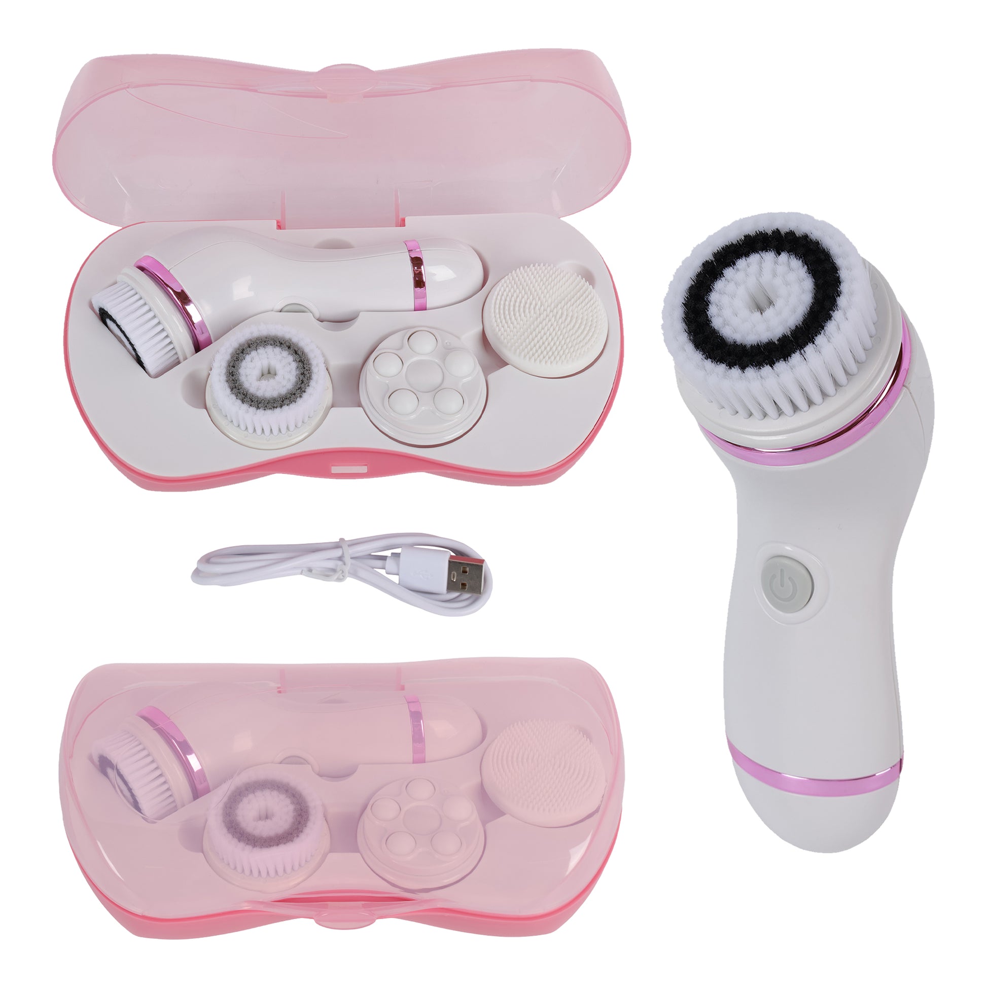 - 4 Interchangeable Brush Heads: Exfoliating Brush, Soft Brush, Silicone Brush, Massage Head.