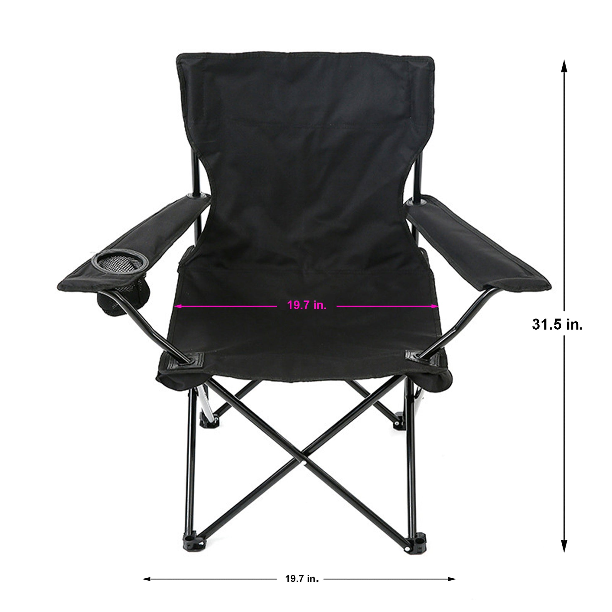 Take comfort on the go with the Zummy Foldable Camping Chair. Whether you're heading to a campsite, beach, concert, or backyard BBQ, this chair delivers convenience and support in a compact, easy-to-carry design. Made from durable polyester, it features a breathable mesh cup holder and a lightweight frame that folds flat in seconds. Measuring 23.6" x 23.6" x 39.4", it provides just the right balance of comfort and portability—plus it comes with its own carry bag for grab-and-go ease.